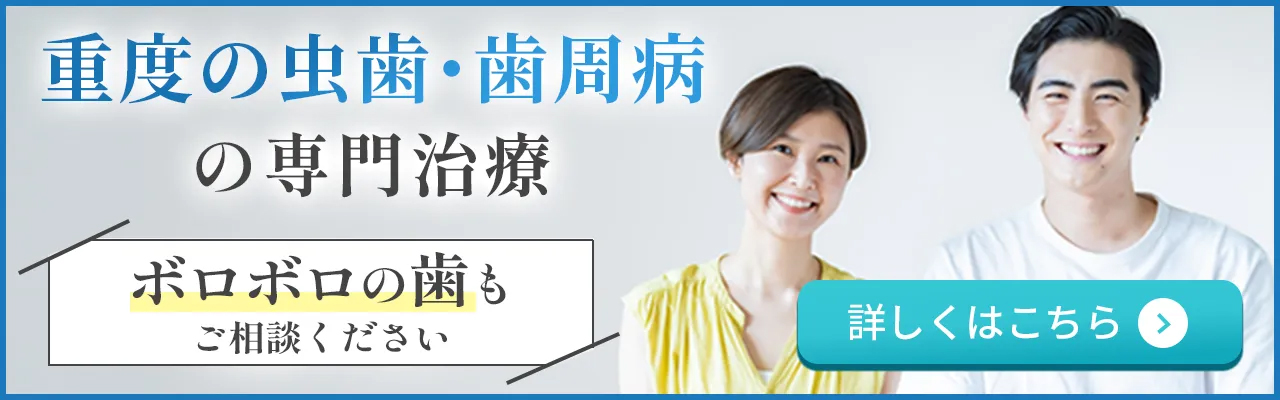 歯周病は気付きにくい病気ですが、糖尿病との因果関係が指摘されるなど、全身の健康にも影響があると言われています。そのため当院では、治療箇所だけでなく全体を診て、歯を長く健康に保てるような治療を行ってまいります。