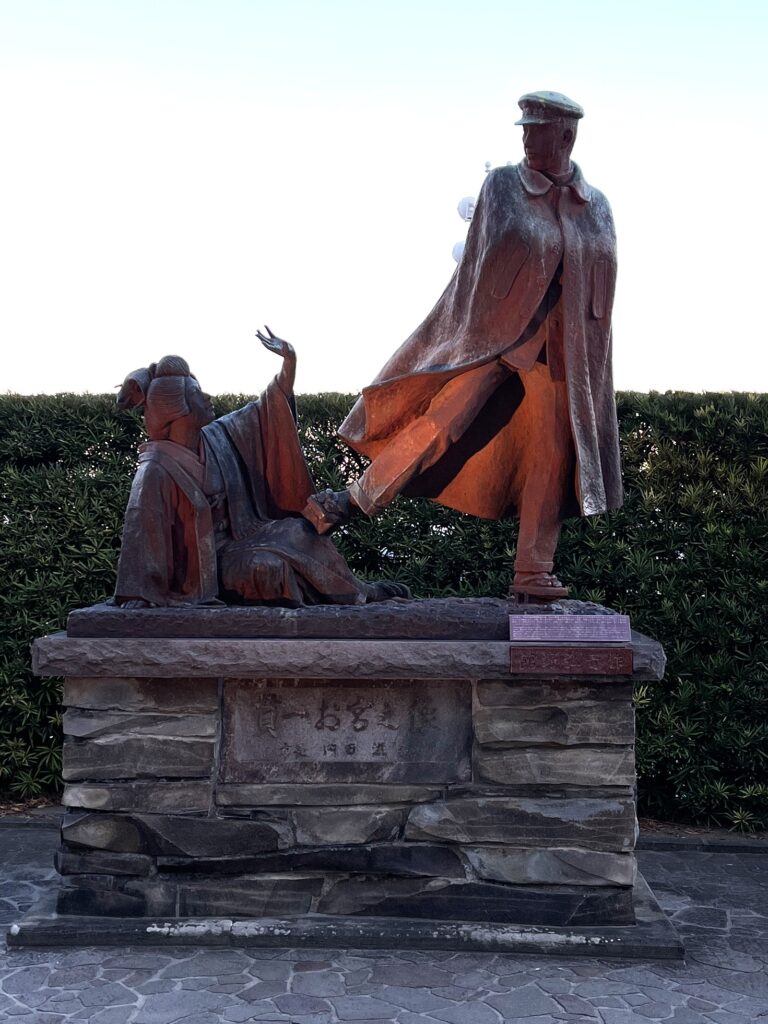 他にも尾崎紅葉の「金色夜叉」で有名な観光名所お宮緑地も訪れました。