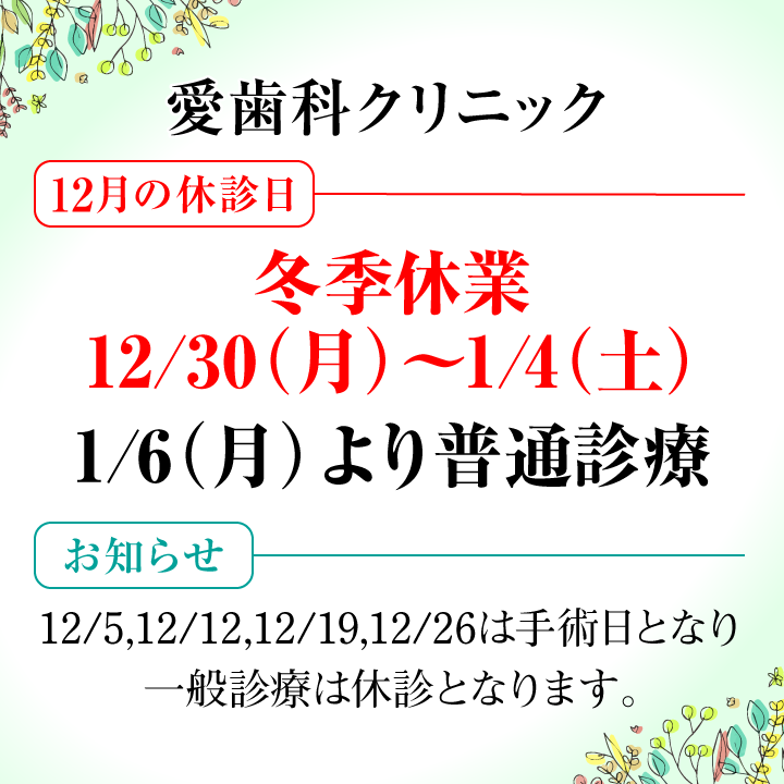 12月休診日情報|埼玉県本庄市の歯医者・歯科|愛歯科クリニック