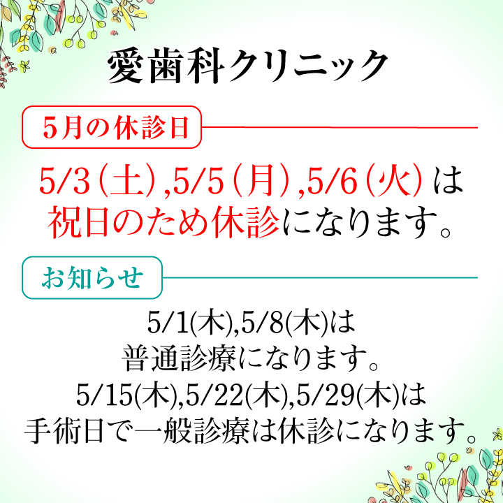 5月休診日情報|埼玉県本庄市の歯医者・歯科|愛歯科クリニック