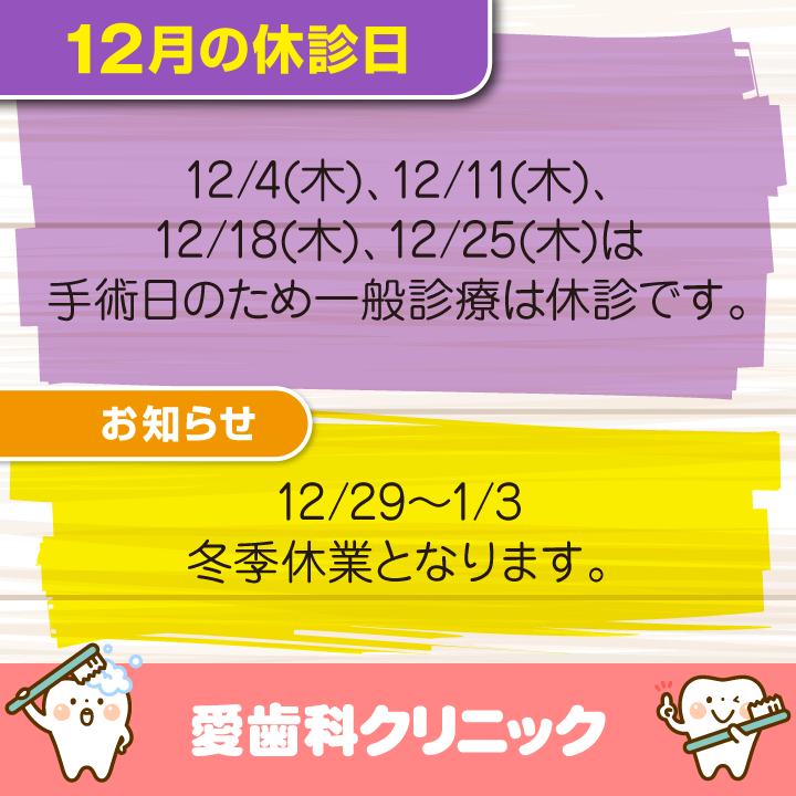 12月休診日情報|埼玉県本庄市の歯医者・歯科|愛歯科クリニック